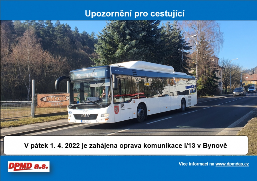 Od pondělí 16. 5. 2022 jsou zastávky Bynov a Bynov škola směr vlakové nádraží na původním místě. Semafory budou zítra v průběhu dne odstraněny