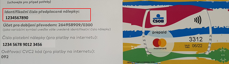 Identifikační číslo předplacené nálepky: